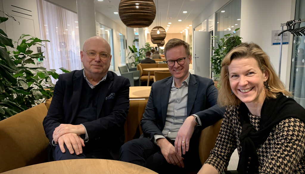 Från vänster: Magnus Ranstorp, docent vid Försvarshögskolan, Edvard Agrell, corporate public affairs manager på Bayer Sverige, och Nina Larsson, stabschef på 4C Strategies Norden. Foto: Sida