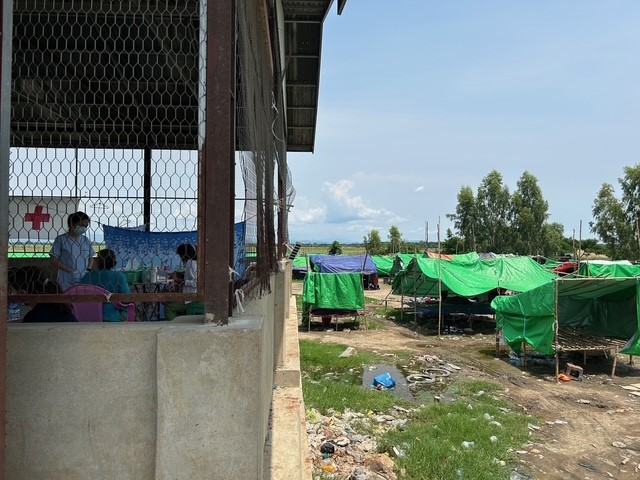 I Mandalay förstördes många kliniker och mobila hälsokliniker är ett sätt att möta de drabbades behov av vård, som här i närheten av ett tillfälligt läger. Många som fördrivits från sina hem har satt upp provisoriska boenden här. Foto: Anna Rahm, Sida